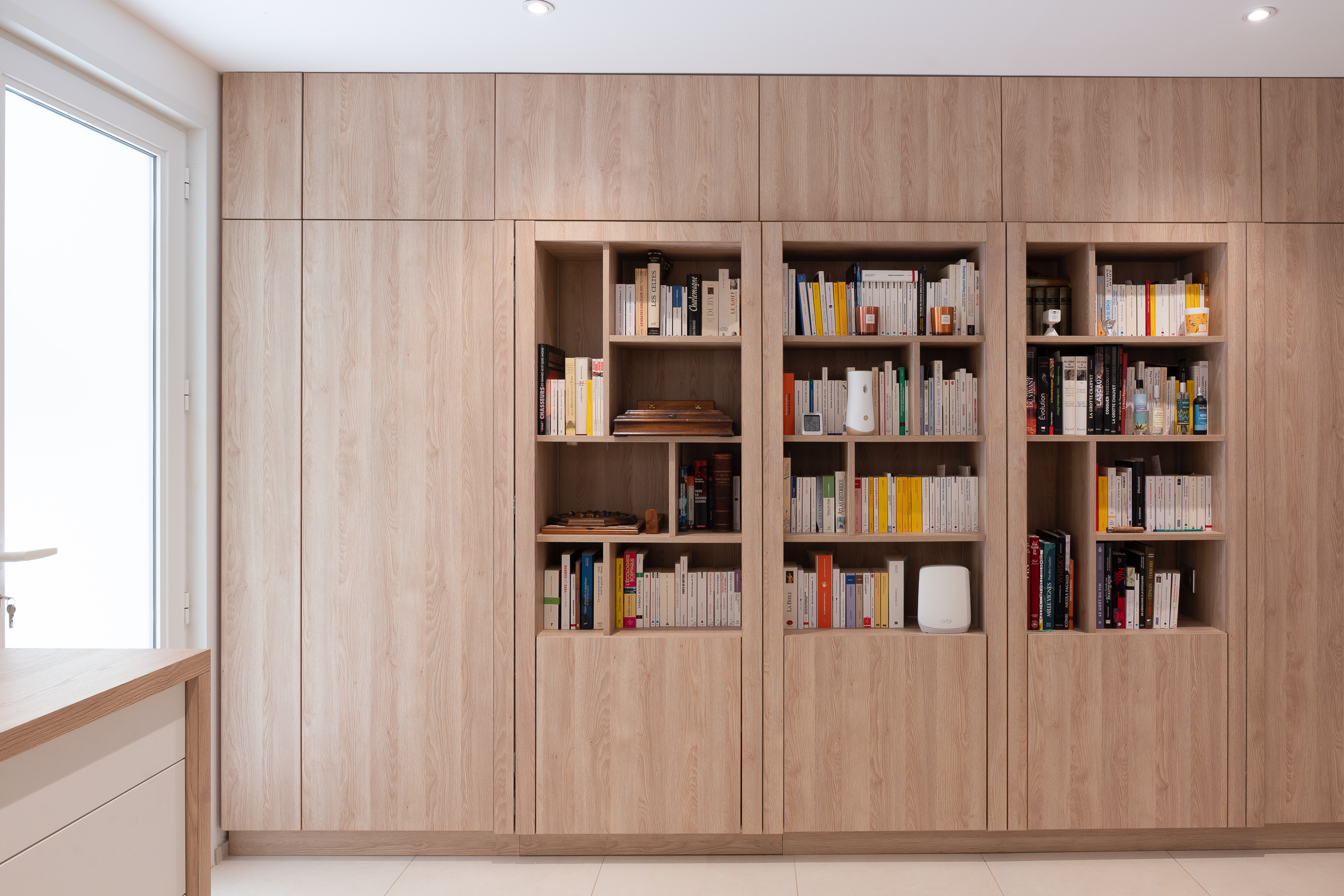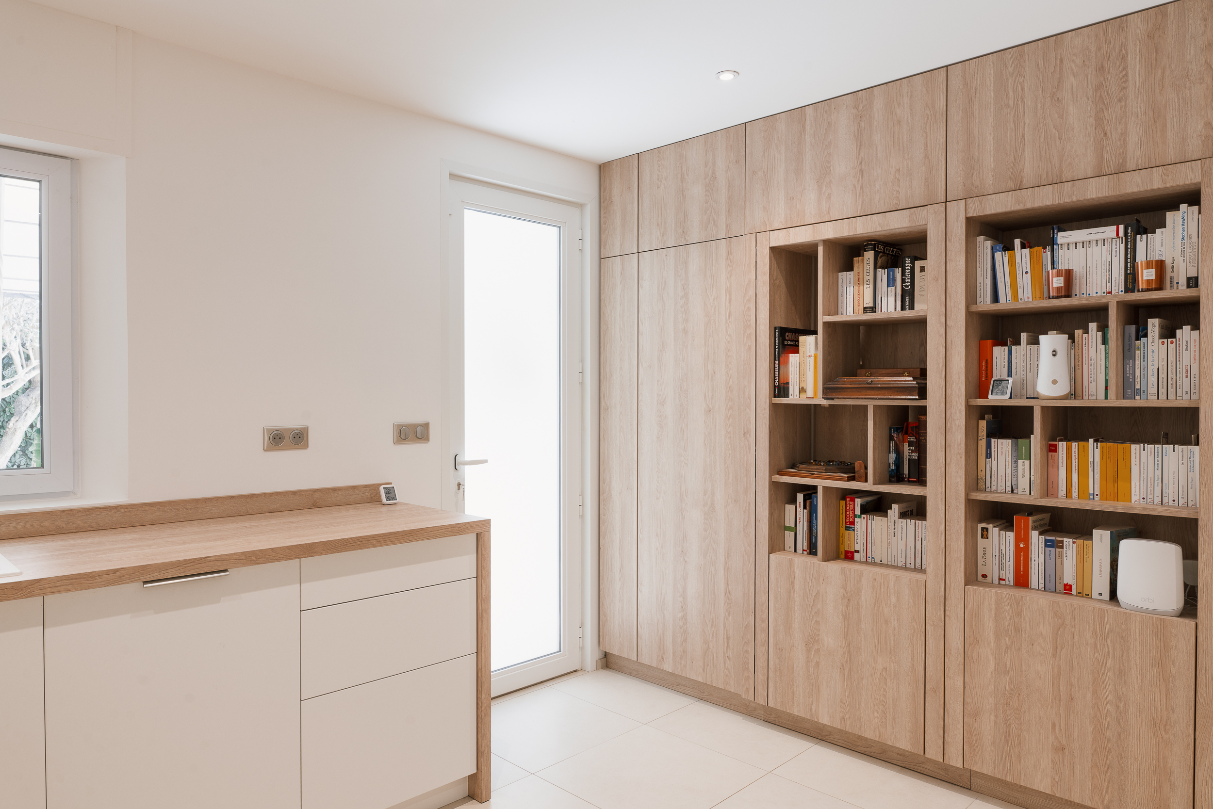 Rénovation d’un RDC, création d’une cuisine, bibliothèque, salle de bain et salon cinéma